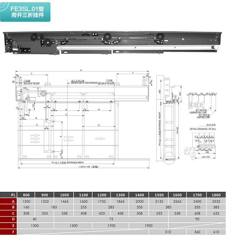 FE3SL.01型旁开三折层门装置